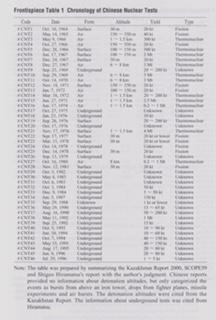 Se tiene constancia de nada menos que 46 explosiones nucleares chinas en el período que va de 1964 a 1996, y no precisamente porque dicho país las haya anunciado o reconocido, sino por mediciones hechas por los países limítrofes (véase cuadro adjunto). Todas las de superficie, sin excepción, tuvieron lugar en esta “Región Autónoma” de Xinjiang poblada por uygures, sobre todo en la zona correspondiente al antiguo Reino de Loulan, con el lago Lop Nur y el río Tarim como sus enclaves naturales más emblemáticos (donde se han descubierto momias de raza blanca, por cierto). El investigador japonés Jun Takada, de la Universidad Médica de Sapporo, ha realizado un detallado estudio de los efectos de la radiactividad de estas pruebas. La sexta de estas bombas experimentales (una prueba termonuclear de 2 Megatones) se detonó en el desierto de Takla Makan, entre el lago Lop Nur y la ciudad de Turpan en junio de 1967 y la más potente de todas (4 Megatones) fue la de noviembre de 1976. Se cree que de 1982 en adelante ya “solo” se han realizado pruebas subterráneas. Desde entonces, la incidencia de cáncer entre los uygures es muchísimo más alta que en el resto de población china y abundan las malformaciones genéticas. Se calcula en 190.000 personas el número de uygures fallecidos como consecuencia de todas estas pruebas nucleares. Por si fuera poco, se rumorea que los activistas uygures en pro de la independencia que son detenidos por el gobierno chino y terminan en campos de concentración, sirven como cobayas para experimentos y para alimentar el tráfico ilegal de órganos humanos. Por favor, reflexiónese sobre todo esto a la hora de equiparar el “separatismo uygur” y el “terrorismo uygur” con el de otras regiones del mundo.