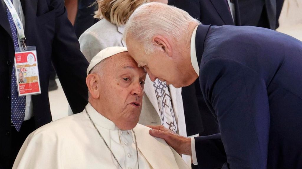 La imagen del papa Francisco y el Presidente Joe Biden tomada durante la última reunión del G-7, con sus frentes unidas, emite un mensaje grotesco y terminal. Con un inquietante sentido anexo escatológico. En la actual y compleja circunstancia que se encuentra el mundo, cercano a una guerra mundial que podría muy bien involucrar el uso de armas nucleares, las biológicas ya han sido usadas bajo la mascarada de la crisis del COVID-19 por sectores de la Oligarquía estadounidense y el comunismo chino, estos dos armatostes obsoletos, el vaticanista y el estadounidense, dos “catoliceporros” de aúpa vinculados a los entornos más corruptos del viejo y el nuevo mundo, constituyen un contundente identificador de agonía y decadencia civilizacionales. Algo que debería preocuparnos a todos.